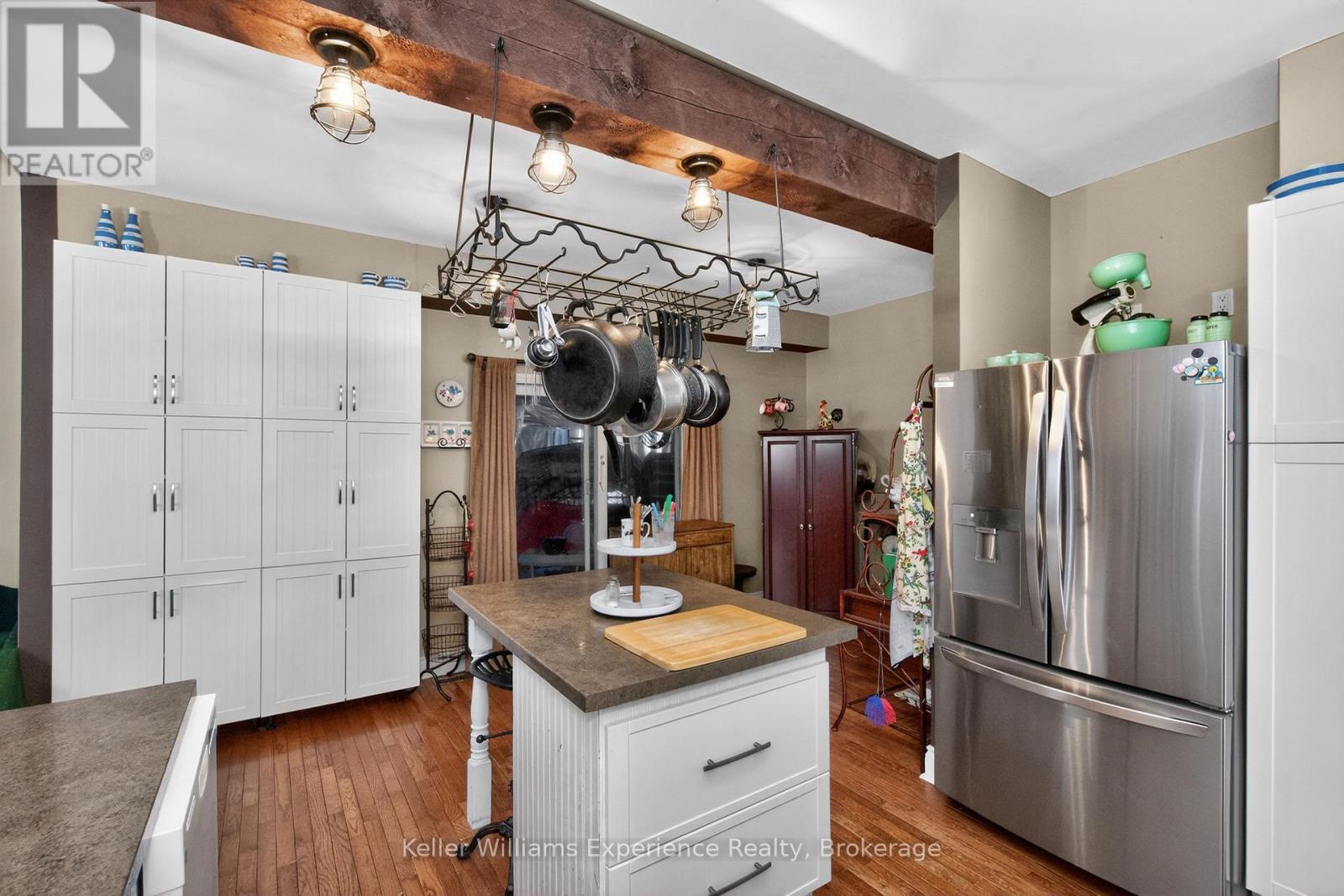 Welcome to 107 Pine St, Waubaushene. This beautifully renovated home offers 4 bedrooms and 4 bathrooms, with over 3,057 sq ft of finished living space, just a 6-minute walk to Georgian Bay. Combining timeless character with modern functionality, it's perfect for large or multi-generational families. The fully finished lower level features an in-law suite with a separate entrance, full kitchen, living area, and bathroom (income potential). The spacious primary bedroom boasts a walk-in closet with built-in shelving, private ensuite, gas fireplace, and balcony. A second generously sized bedroom also includes a walk-in closet and its own balcony. Hardwood and tile floors flow throughout the main level, while the kitchen offers ample storage and convenient access to both the foyer and an additional entrance. Enjoy the wrap-around porch, expansive deck, and fully fenced yard, ideal for privacy and relaxation. Covered outdoor area for the hot tub. Additional updates include a furnace from 2019. Conveniently located minutes from Highway 400 and Highway 12, offering easy commuting to Midland, Orillia, Barrie, or further north. A rare opportunity to own a spacious, character-filled home in the heart of Waubaushene. (id:48047)