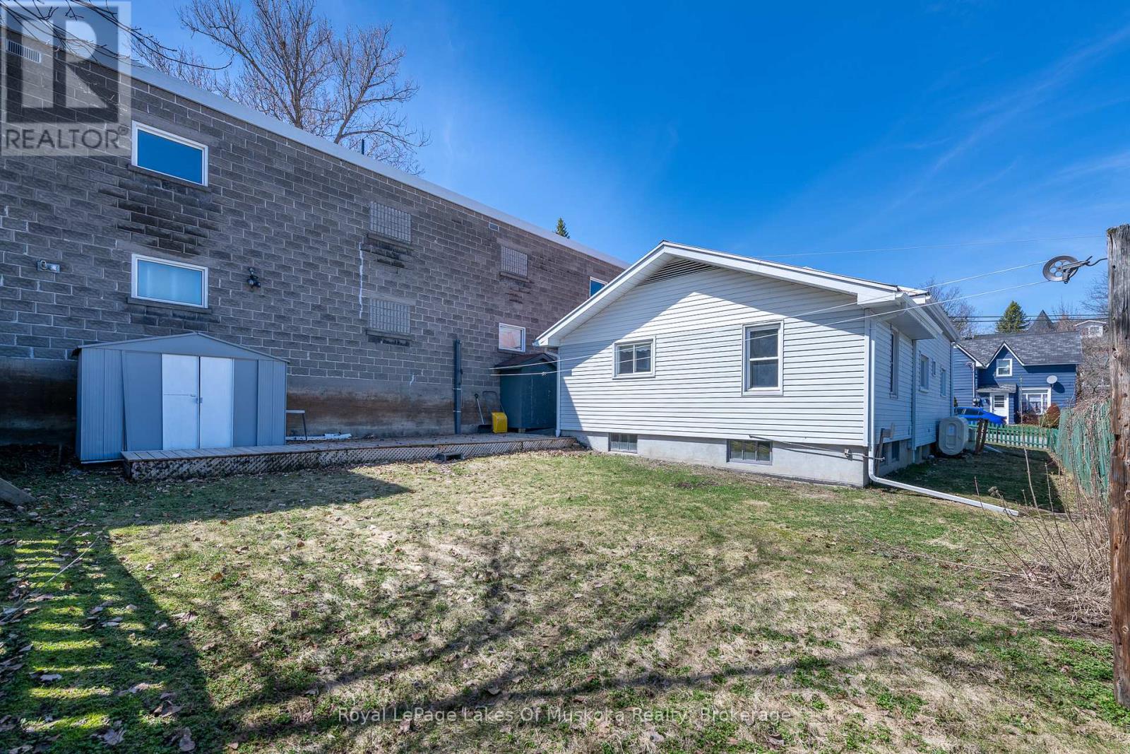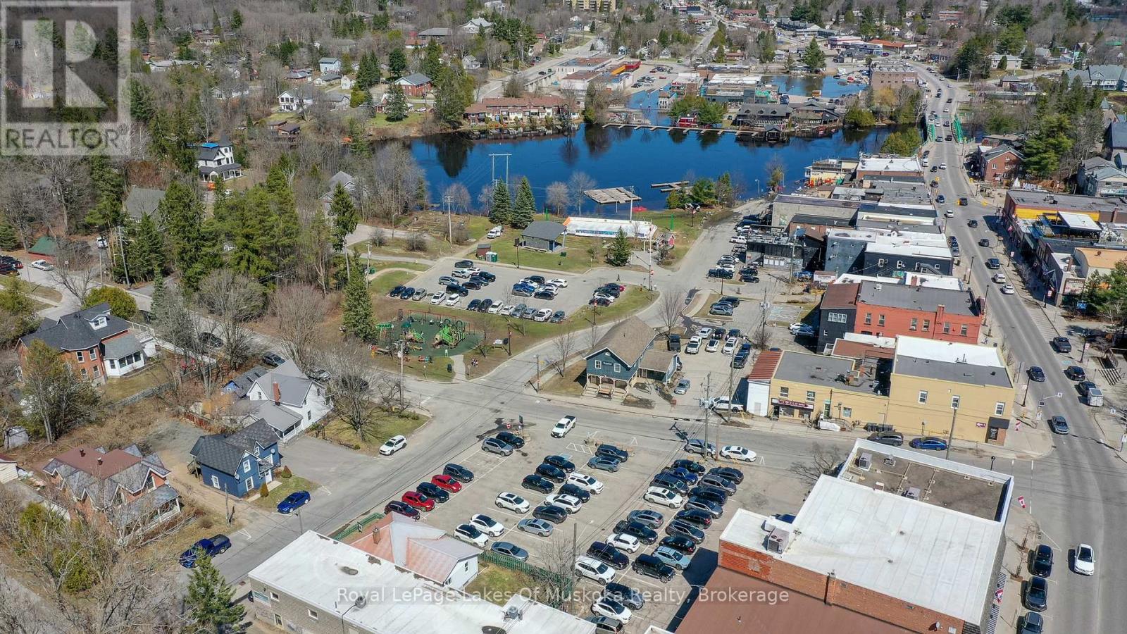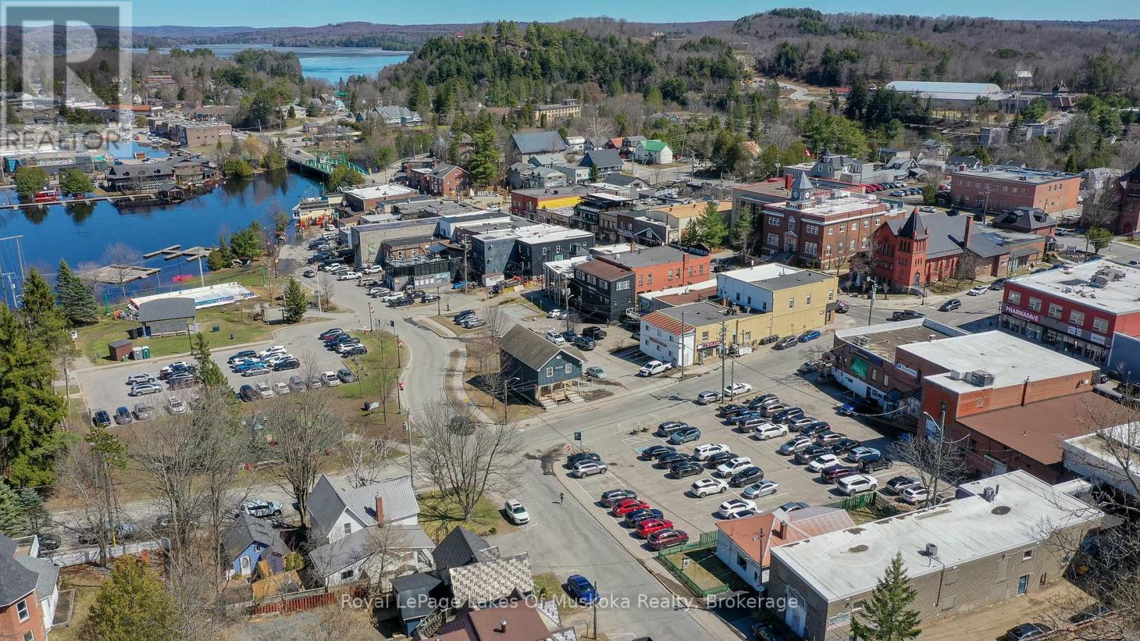 Opportunity in the core of downtown Huntsville to purchase this clean, well maintained 1000 ft sq, 2 bedroom 1 bathroom bungalow with a full dry basement on a level lot with room for expansion. The location and building could be ideal for a real estate office, dentist, accountant, law office, daycare, commercial endeavour or many other uses. Zoned Central Business District (formerly C7) which defines the core downtown area designated for high-density, mixed-use development, including commercial, retail, and residential uses. Focus is commercial activities, professional services and high density residential housing, including apartments above commercial spaces. CBD also often allows for reduced or zero-lot-line setbacks, buildings close to the street, higher building height, reduced requirements for on-site parking. The property has been always been a family home and is vacant and ready for you to develop to your requirements. View of the waterfront downtown park from the front yard. The property owns right to the green picket fence on Caroline St and this area could also be used as parking if required. (id:48047)